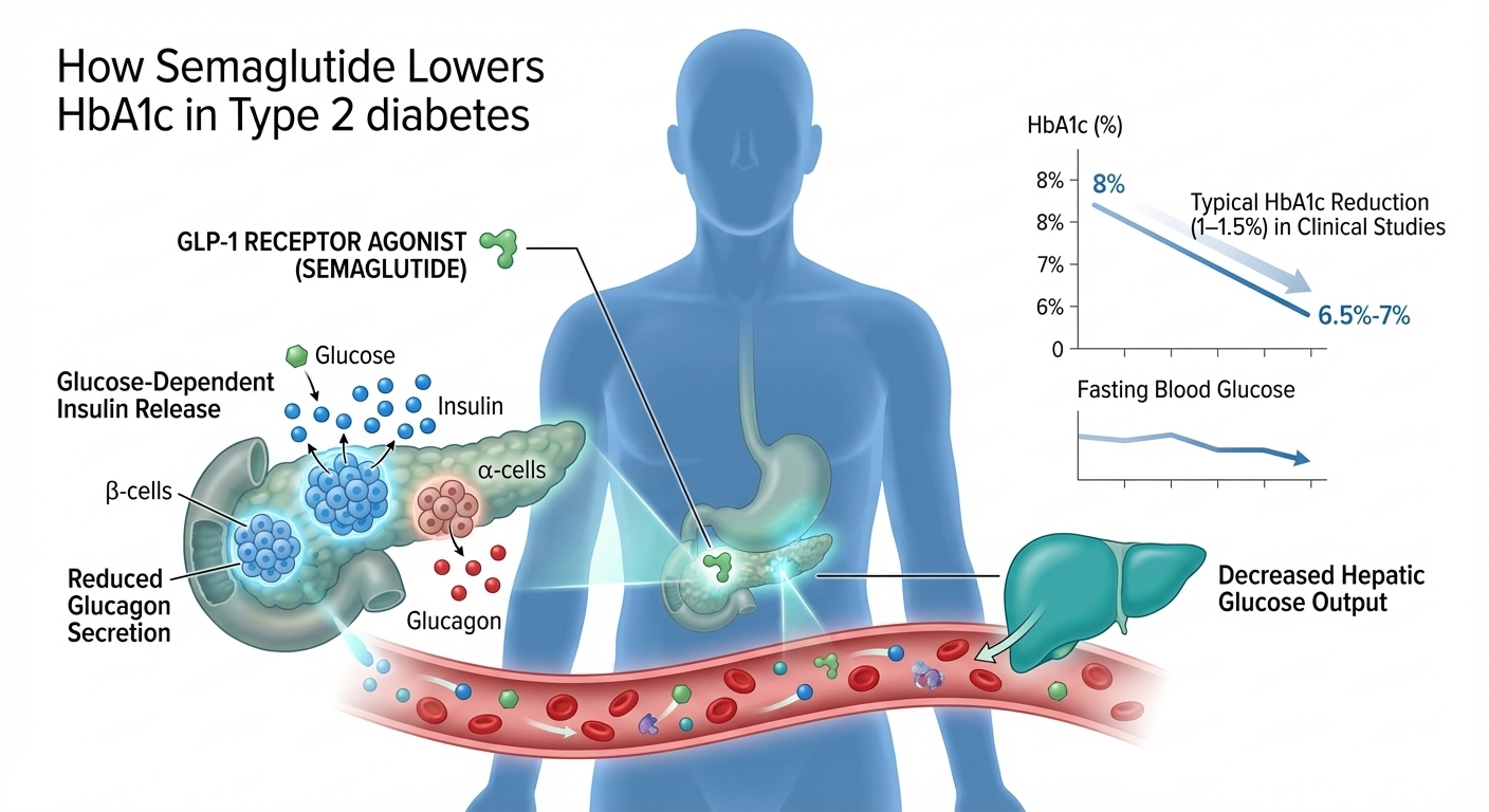 Studies consistently show that Semaglutide can lower HbA1c—a key marker of long-term blood sugar control—by approximately 1% to 1.5% in people with Type 2 diabetes. This happens because it helps the body produce more insulin while reducing glucagon.